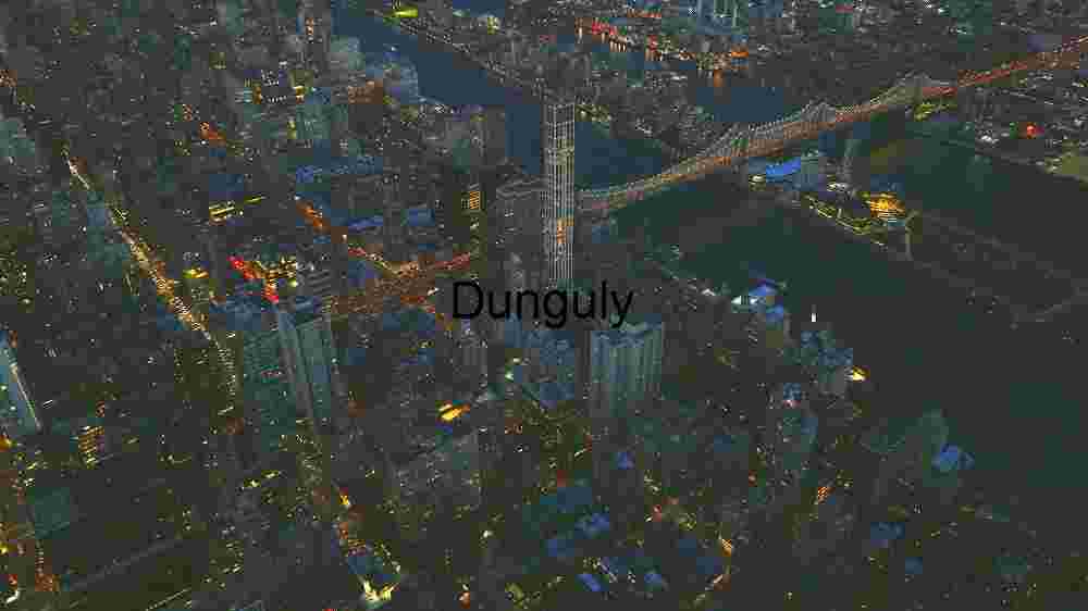 Description: This image captures an aerial view of a bustling city at night. The cityscape is densely packed with high-rise buildings and streets illuminated by streetlights and vehicle headlights. A prominent feature in the image is a brightly lit bridge spanning a river, connecting two parts of the city. The lights from the buildings and streets create a vibrant and dynamic scene, showcasing the city’s lively atmosphere and architectural density.