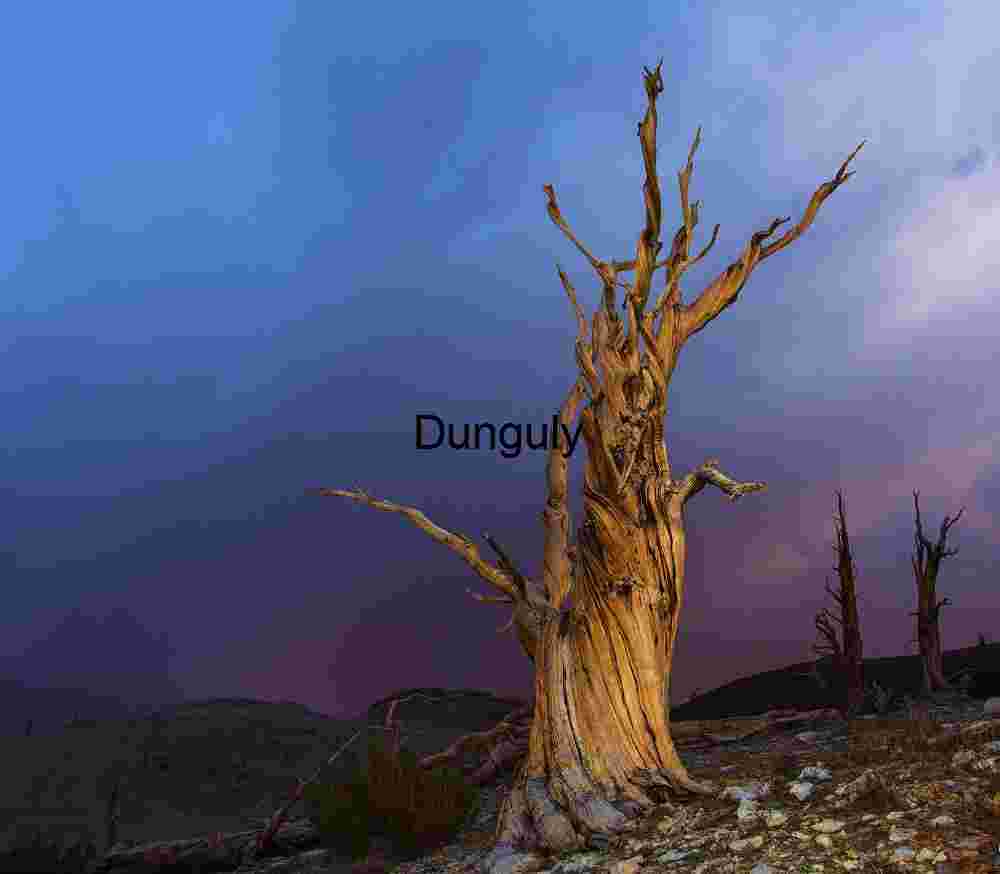 **Description:** This stunning image showcases an ancient bristlecone pine tree, its gnarled and twisted branches reaching toward the sky. Weathered by time and the elements, the tree stands as a testament to endurance and natural beauty. The sky above shifts from deep blues to purplish hues, adding an atmospheric depth that enhances the rugged landscape. Sparse vegetation and rocky terrain surround the tree, emphasizing the harsh conditions in which it thrives. A powerful representation of resilience and survival.