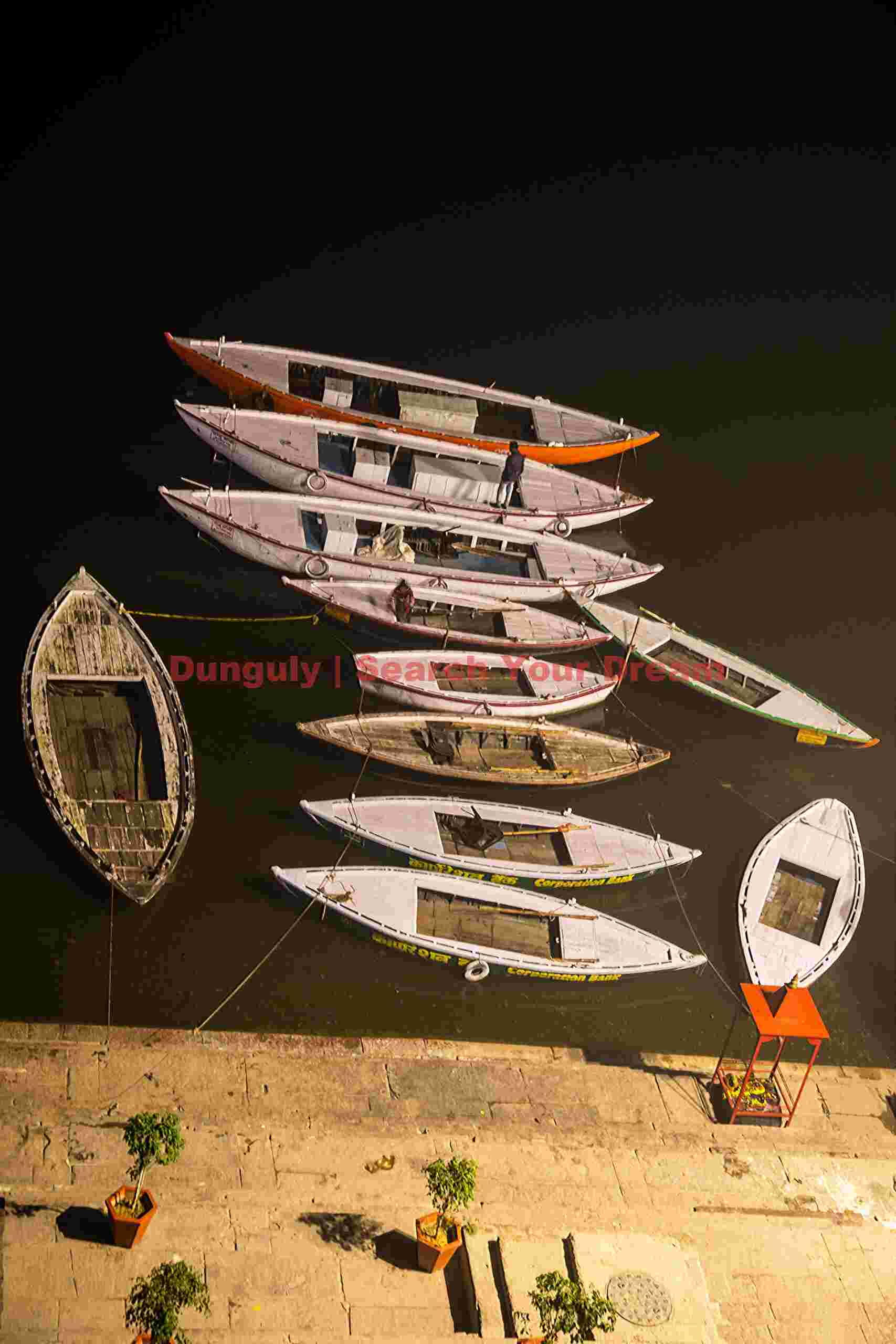 Title: Boat stack before dawn