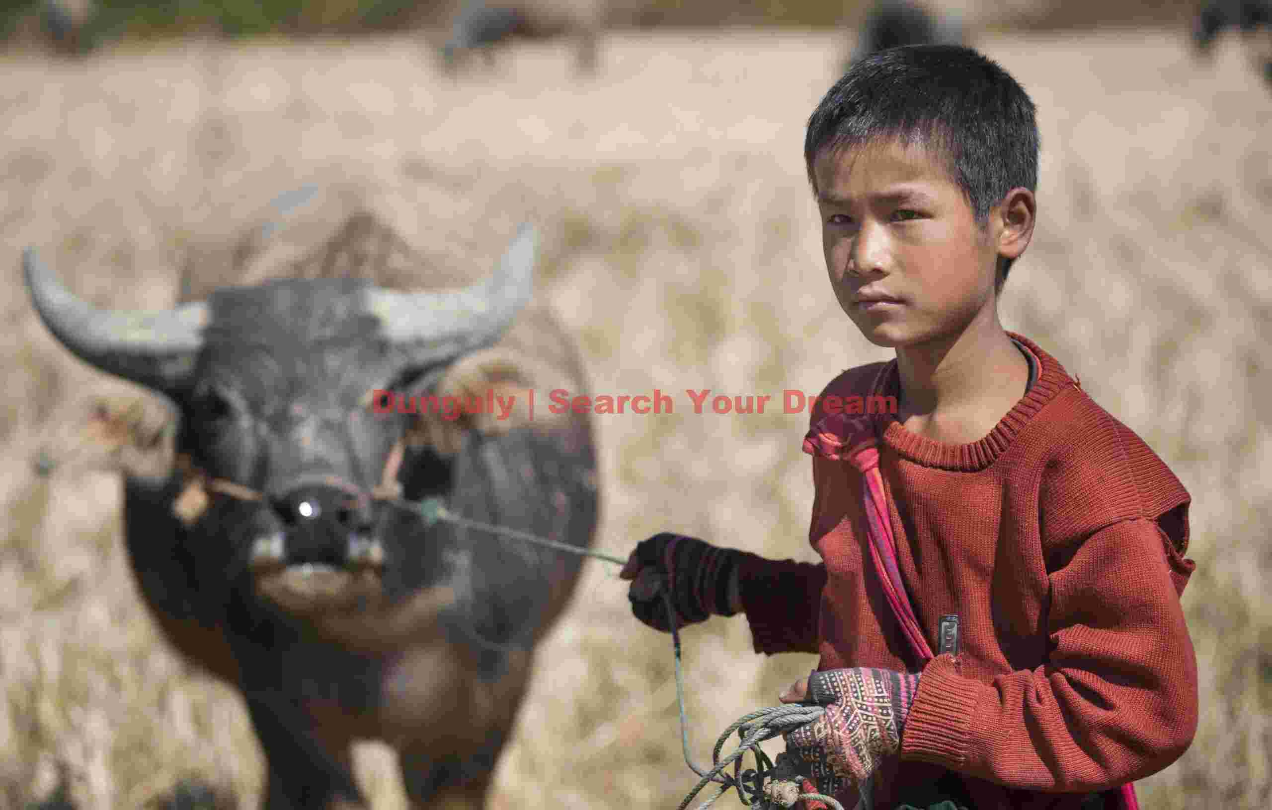 Title: Boy leading ox