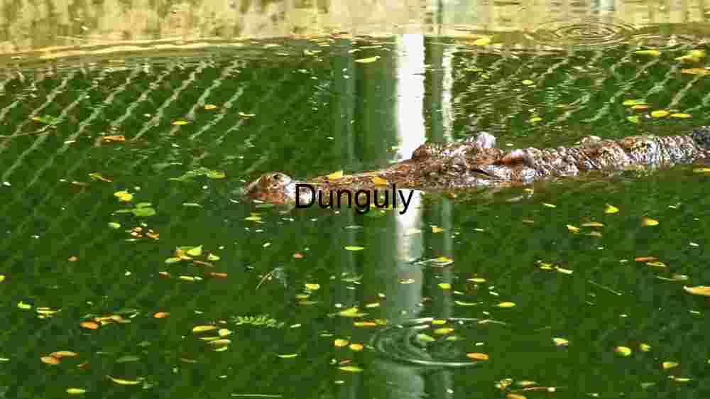 Description: This captivating image showcases a crocodile, partially submerged in water, with only its eyes and a portion of its back visible above the surface. The water, dappled with sunlight and scattered with yellow leaves, enhances the camouflage effect. The image provides a fascinating glimpse into the crocodile’s natural behavior and its remarkable ability to blend into its environment, a trait that makes it an effective ambush predator.