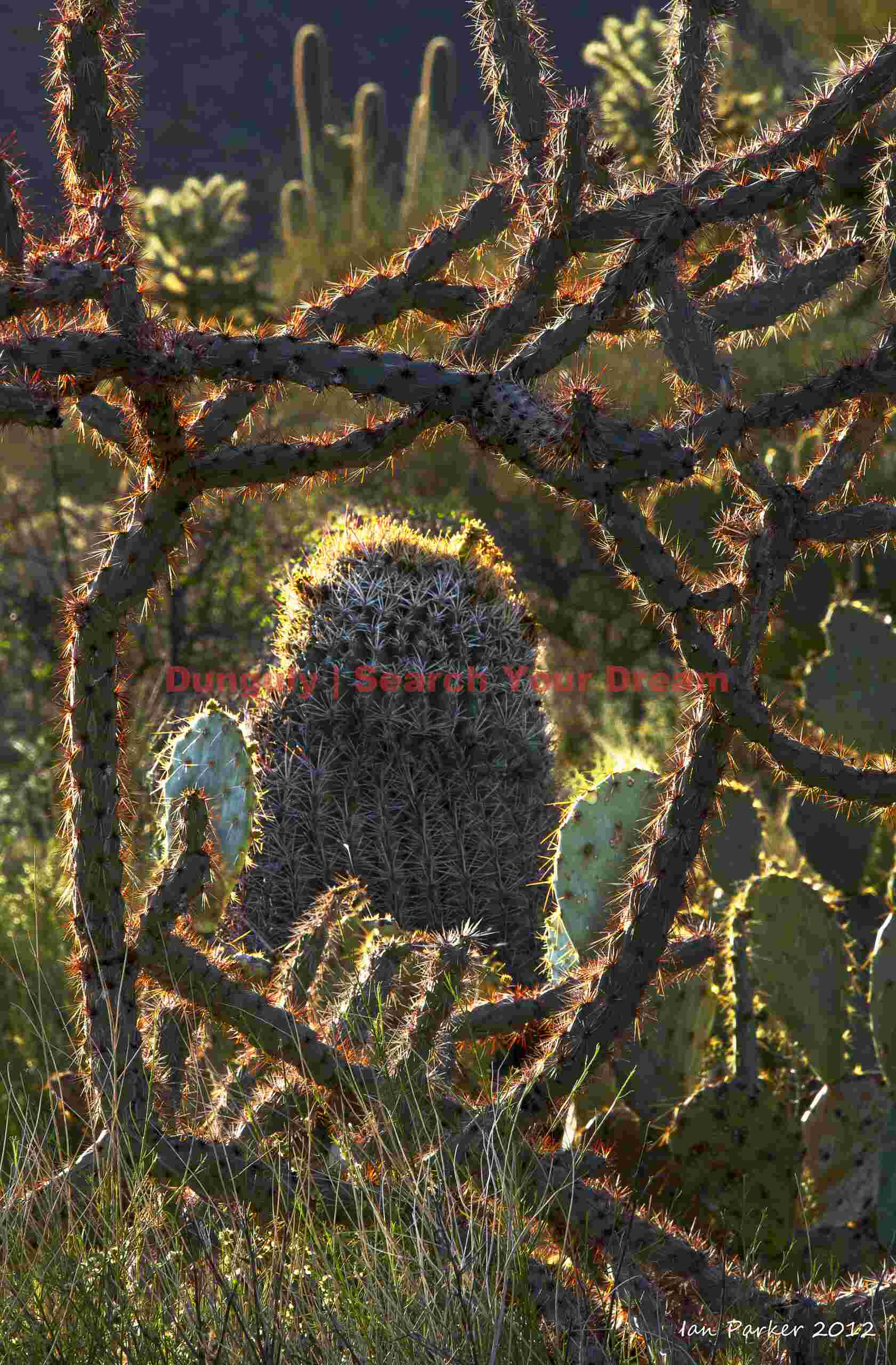 A captivating perspective of a saguaro cactus viewed from within its protective spine cage. This unique vantage point reveals the geometric patterns and architectural beauty of the desert’s most iconic resident at Saguaro National Park.