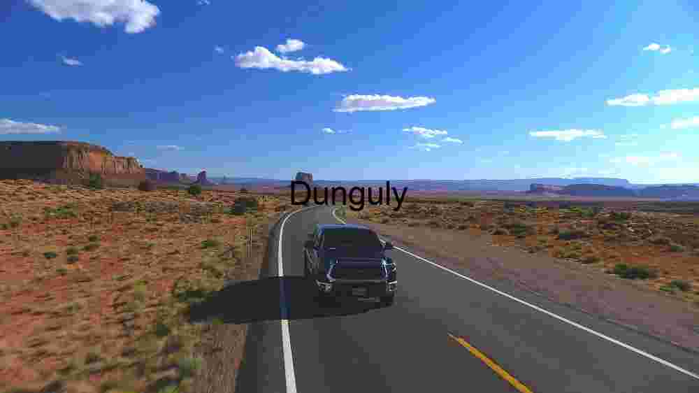 Description: A blue pickup truck travels along a highway through a vast desert landscape, surrounded by red rock formations under a clear blue sky. This scenic drive captures the essence of adventure and the beauty of the American Southwest.