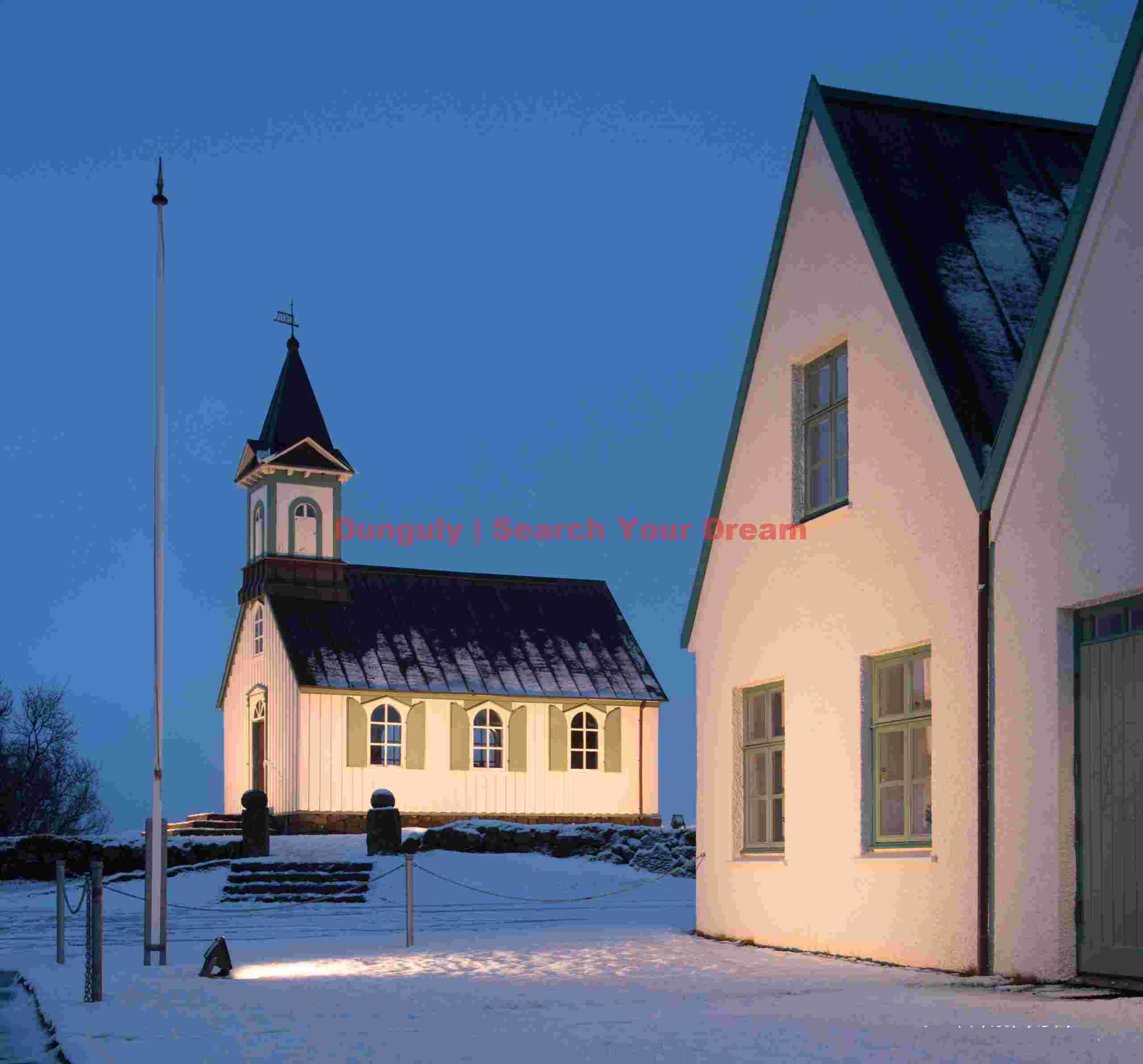 Keywords: Iceland, Floodlit, church, Pingvellir, architecture, building, landmark, historic, landscape, nature