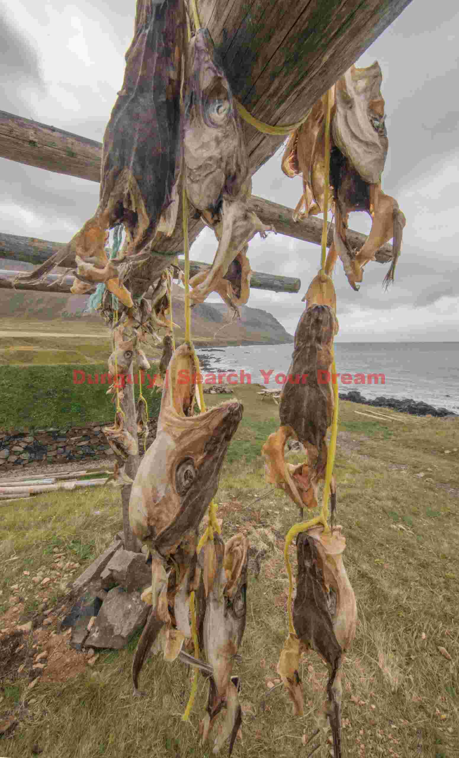 DESCRIPTION: A stunning capture of glacial ice formations at Iceland’s renowned Fish hanging to dry. The translucent ice showcases nature’s sculptural artistry, shaped by centuries of glacial movement and erosion. This photograph captures the ethereal beauty and fragile nature of Iceland’s ancient ice formations.