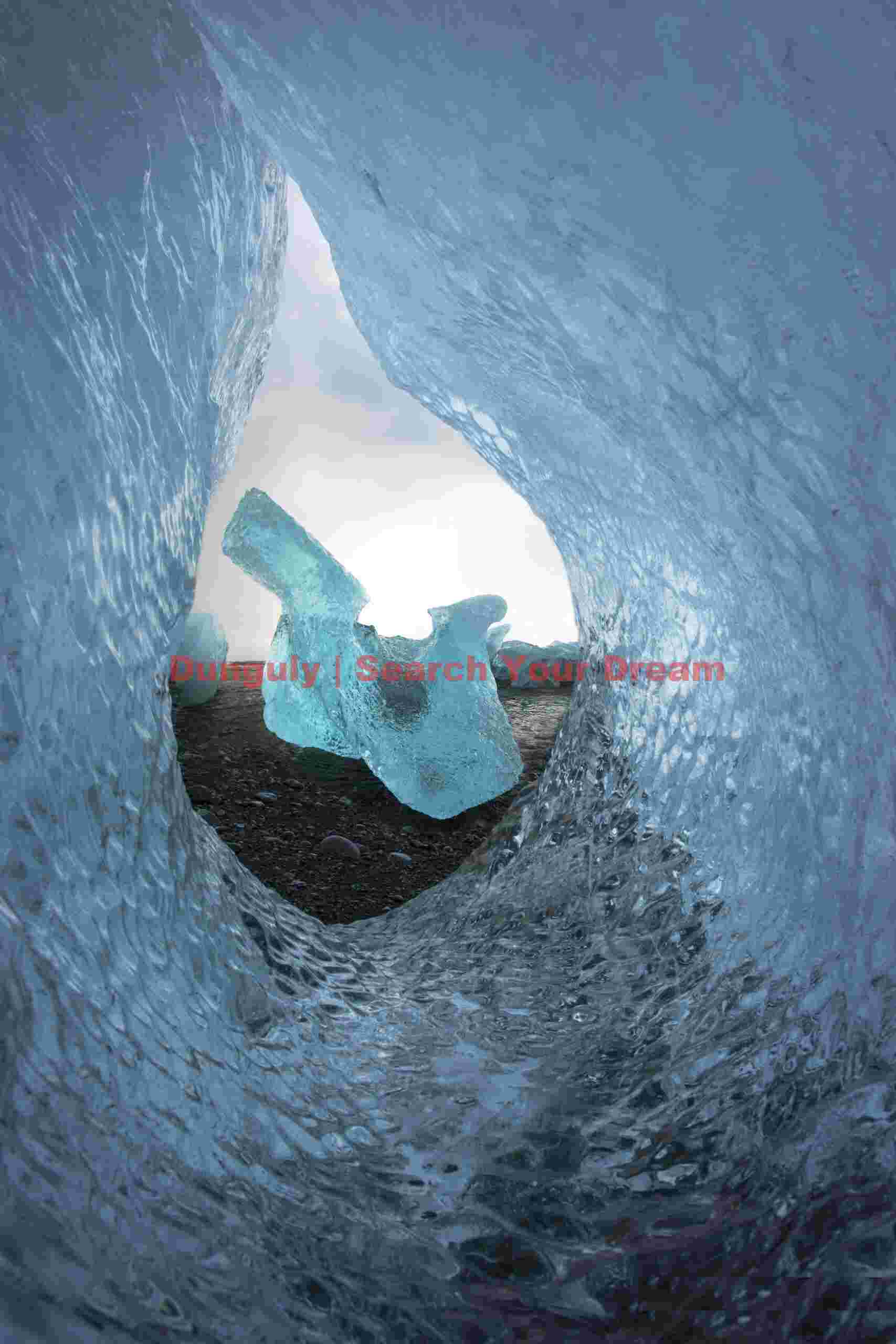 DESCRIPTION: A stunning capture of glacial ice formations at Iceland’s renowned Jökelberg through an ice tunnel. The translucent ice showcases nature’s sculptural artistry, shaped by centuries of glacial movement and erosion. This photograph captures the ethereal beauty and fragile nature of Iceland’s ancient ice formations.