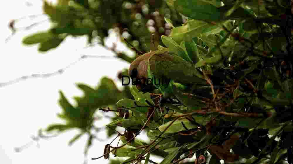 **Keywords:** parrot, green, foliage, leaves, branches, camouflage, nature, wildlife, birdwatching, avian, perched, foraging, nibbling, natural habitat, lush vegetation, subtropical, fauna, ornithology, feathered, tree-dweller, ecosystem, biodiversity, conservation, animal behavior, outdoor photography, environmental beauty, serene, undisturbed, ecological study, forest dweller, subtlety, blending, avifauna, wild bird, natural environment, flora, fauna, wildlife snapshot, beak, arboreal, ecological balance, nature photography, subtle coloration, habitat preservation, wilderness, leafy, bird feeding, undomesticated, forest ecosystem, photography subject.
