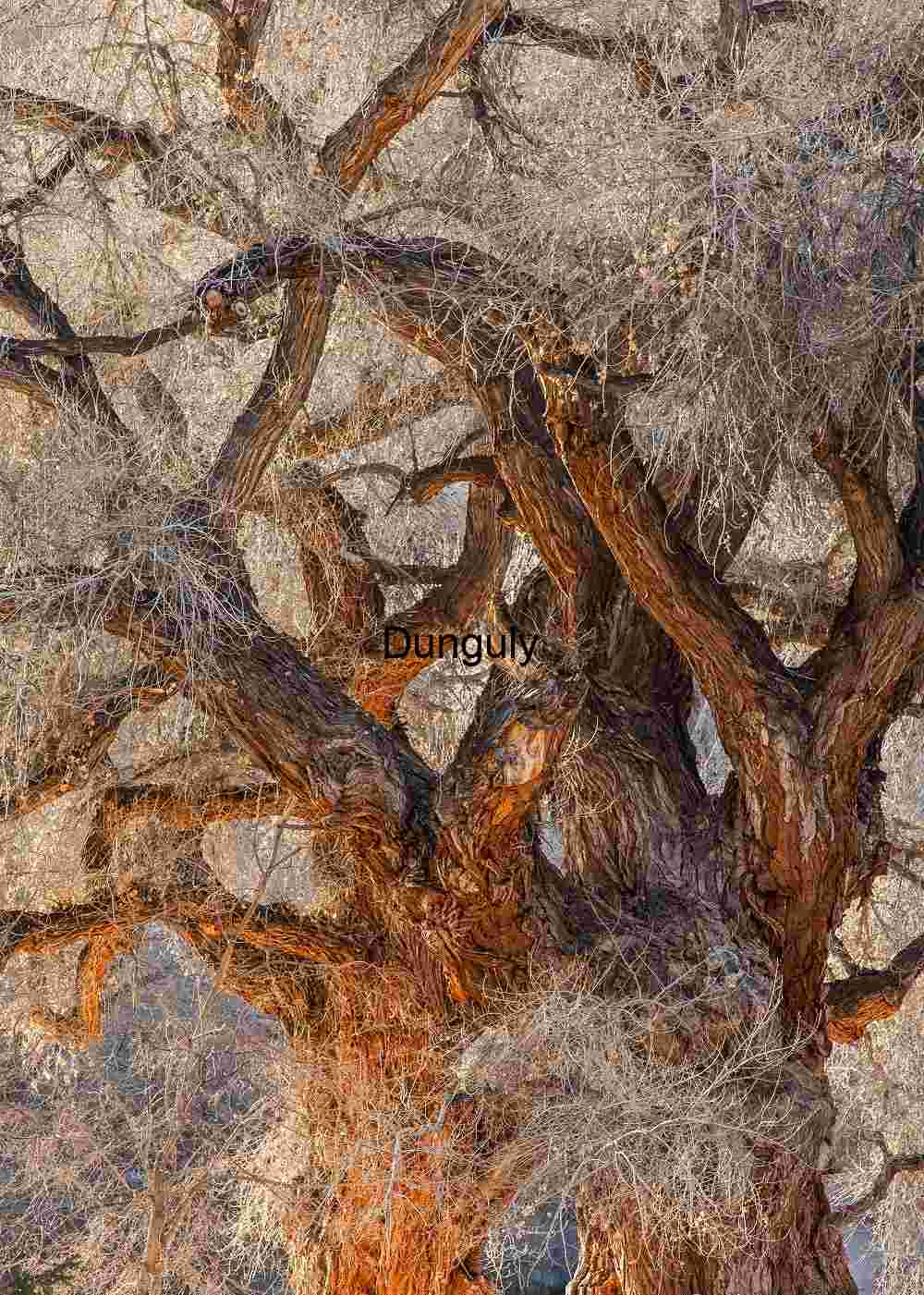 Keywords/Tags (10-15 Relevant Terms) Ancient Trees, Gnarled Trunk, Canyon Landscape, Desert Wilderness, Cottonwood, Riparian Zone, Utah Landscape, Capitol Reef, Moab, Winter Trees, Leafless, Rustic Fence, Natural History, Endurance, Fine Art Photography.