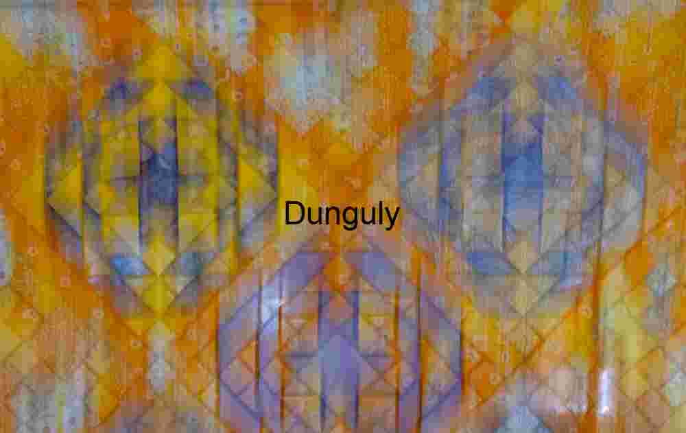 ALT Text: Abstract textile art featuring a vibrant, digitally-altered quilt with a motion blur effect; geometric shapes in orange, yellow, and blue. Accessibility, detailed visual description, mentions the effect.