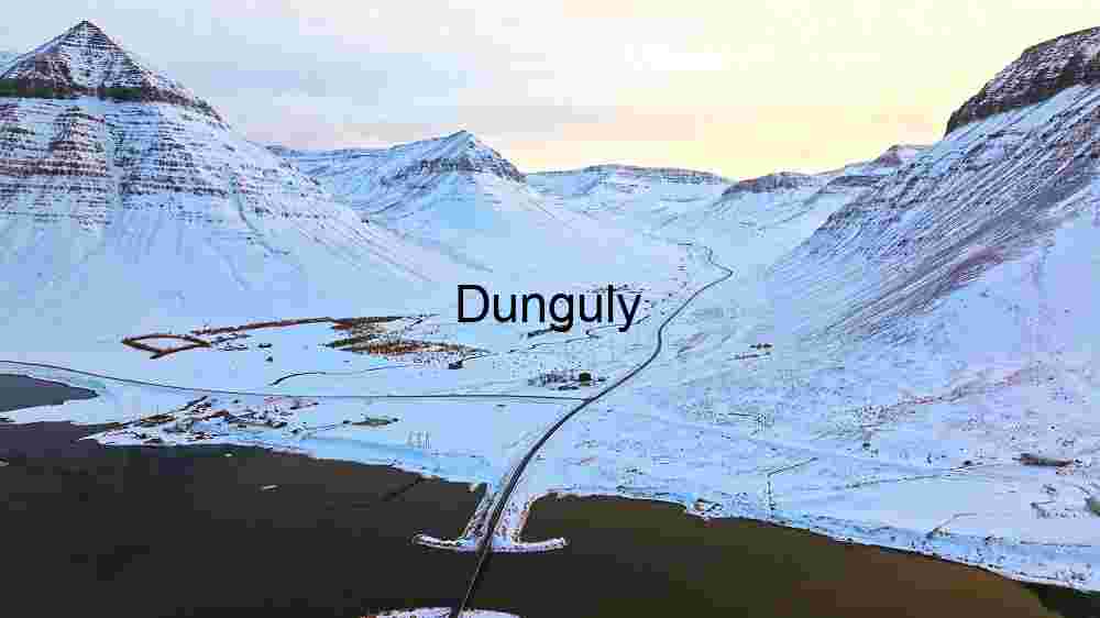 Description: This breathtaking image captures an aerial view of a snow-covered valley in Norway, flanked by majestic mountains with sharp peaks. The soft glow of the winter sun casts subtle shadows, adding depth to the undulating terrain. A winding road cuts through the landscape, connecting a scattering of buildings, hinting at human habitation in this serene and isolated environment.
