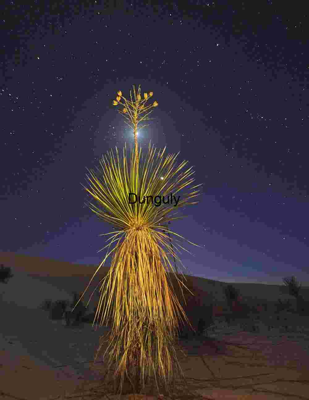 Oak tree yucca light painted with moon