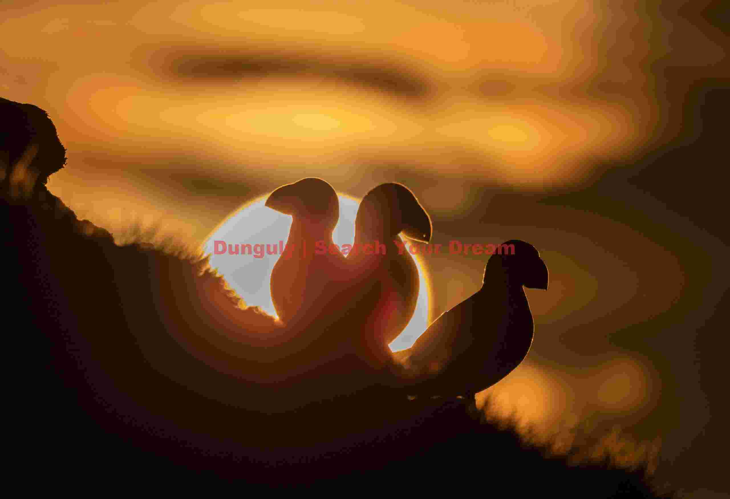 TITLE: Puffin Silhouettes Against Midnight Sun