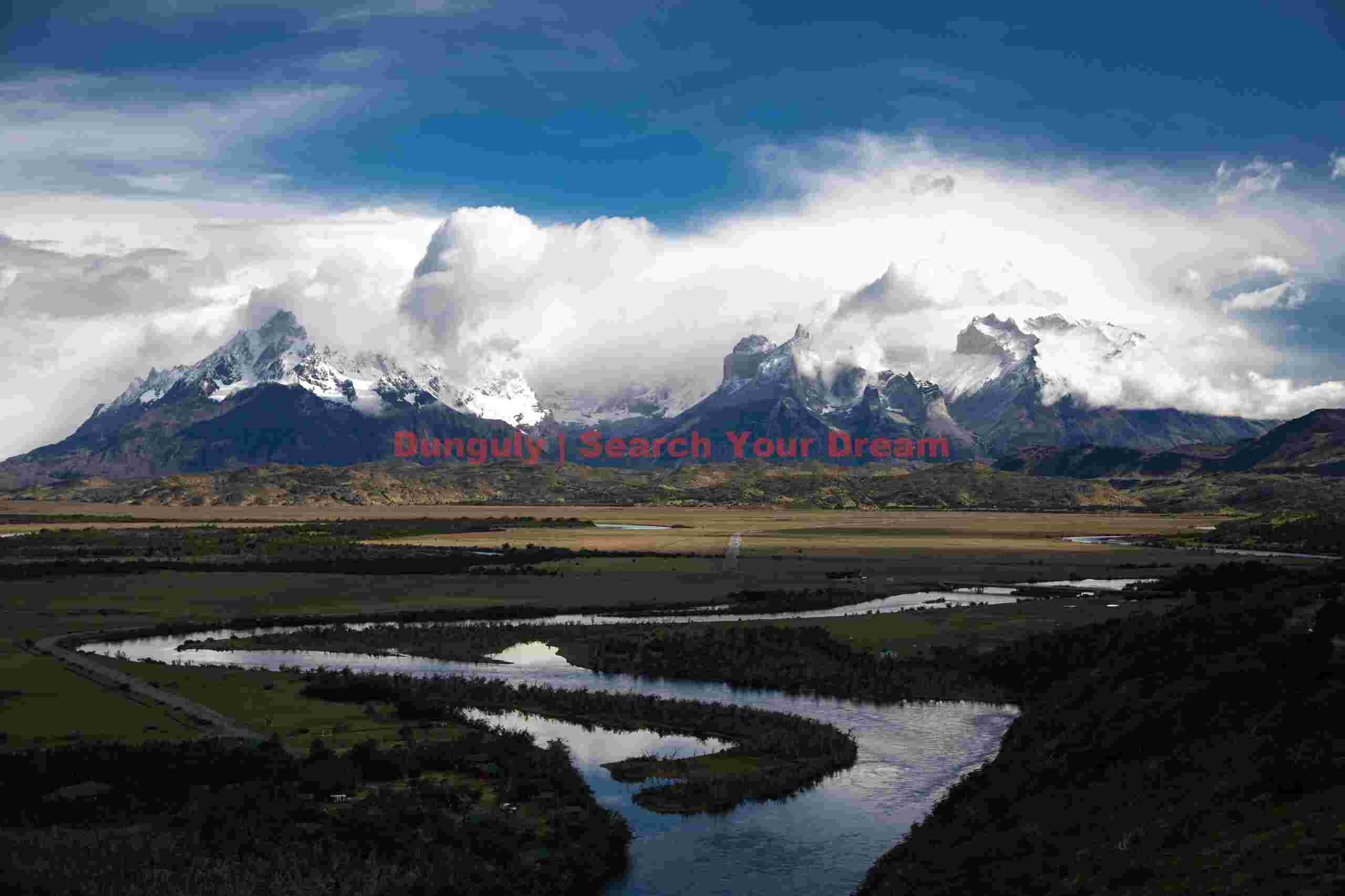 Title: Rio Serrano with Cuernos del Paine cloudcap