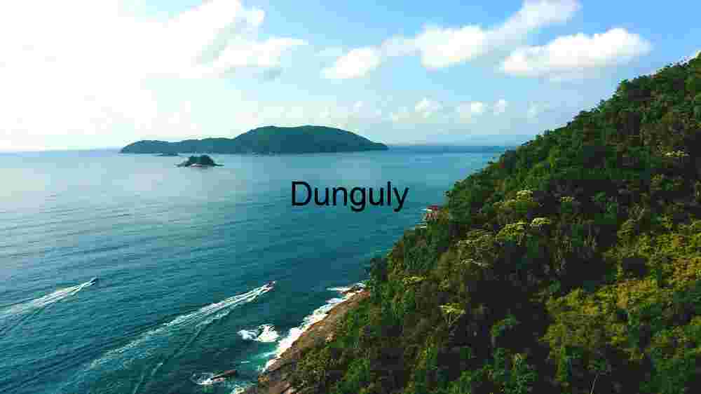 Description: This image captures a stunning coastal landscape featuring a lush, green hillside on the right and a vast, calm ocean extending to the horizon. In the distance, there are several islands covered in dense vegetation. The clear blue sky is dotted with fluffy white clouds. Two speedboats are seen cutting through the water, leaving white trails behind them, adding a dynamic element to the serene scene.