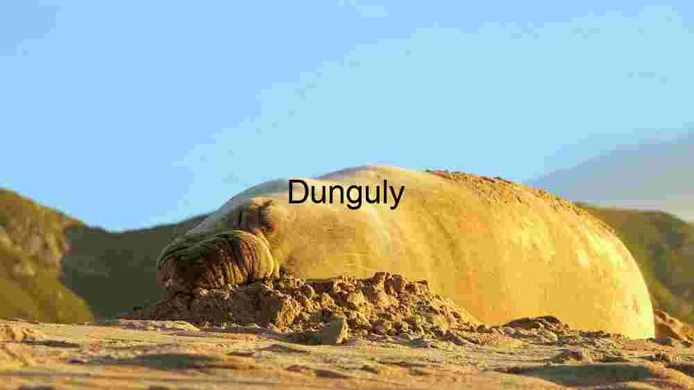 Description: A tranquil image capturing a seal resting on a sandy beach, with its body partially covered in sand and basking in the warm glow of sunlight. The background features gentle hills under a clear blue sky, adding to the peaceful ambiance of the scene.