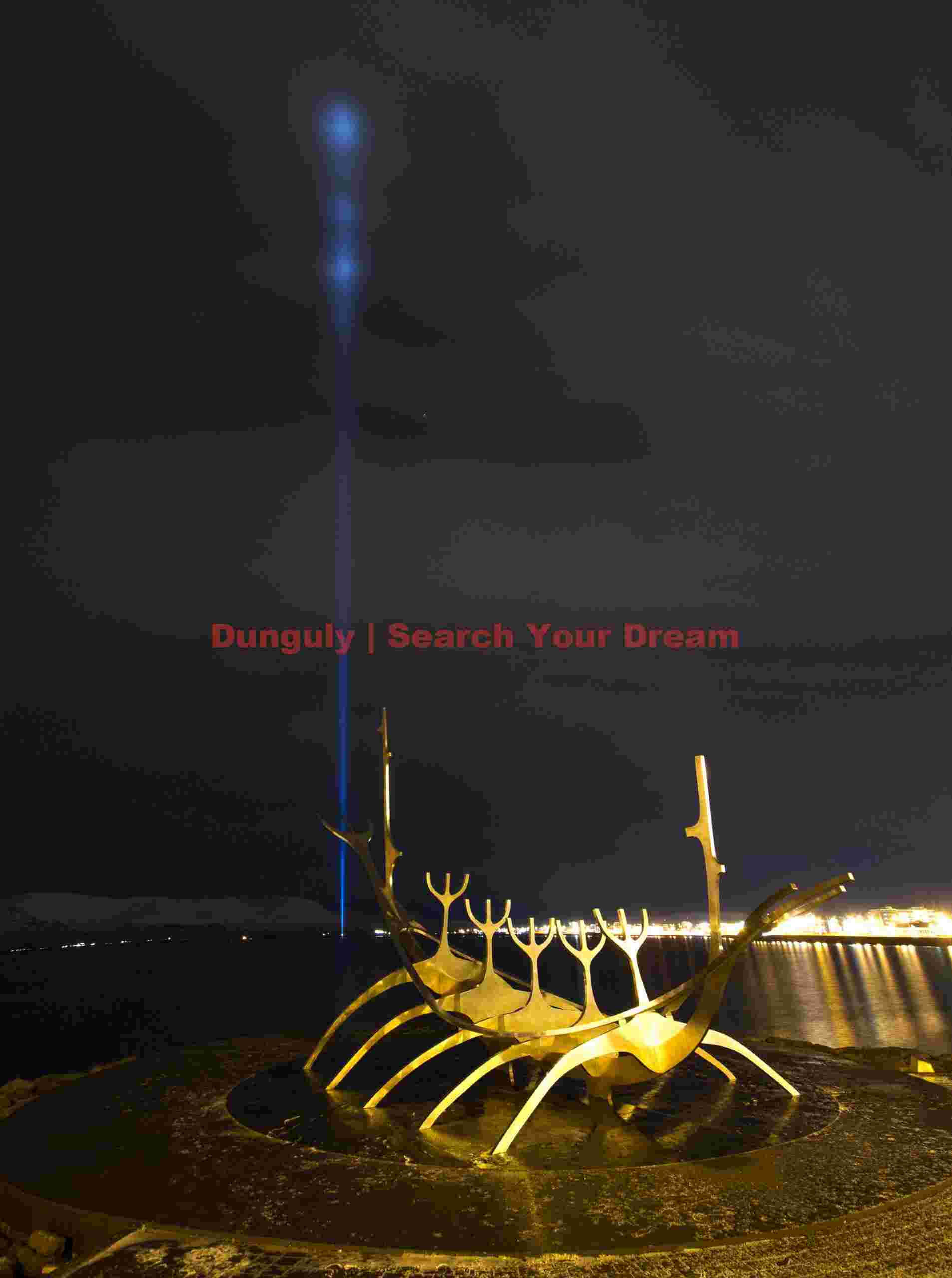 Description: A stunning photograph capturing solfar sculpture with john lennon peace tower memorial; reykjavik, embodying the raw natural beauty of Iceland’s diverse landscapes.