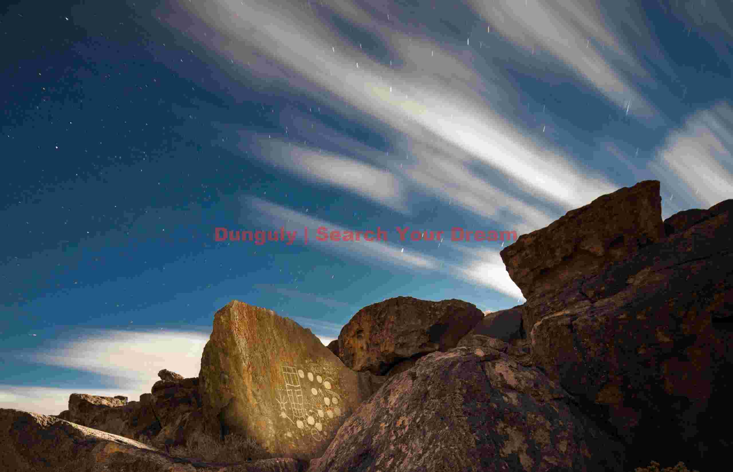 Title: Thirteen Moons Petroglyph with Moonlit Cloud Streaks