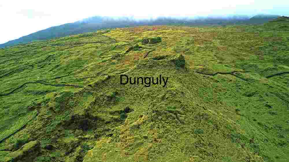 Description: An aerial view of a lush, green valley with volcanic features, showcasing nature’s resilience and beauty.