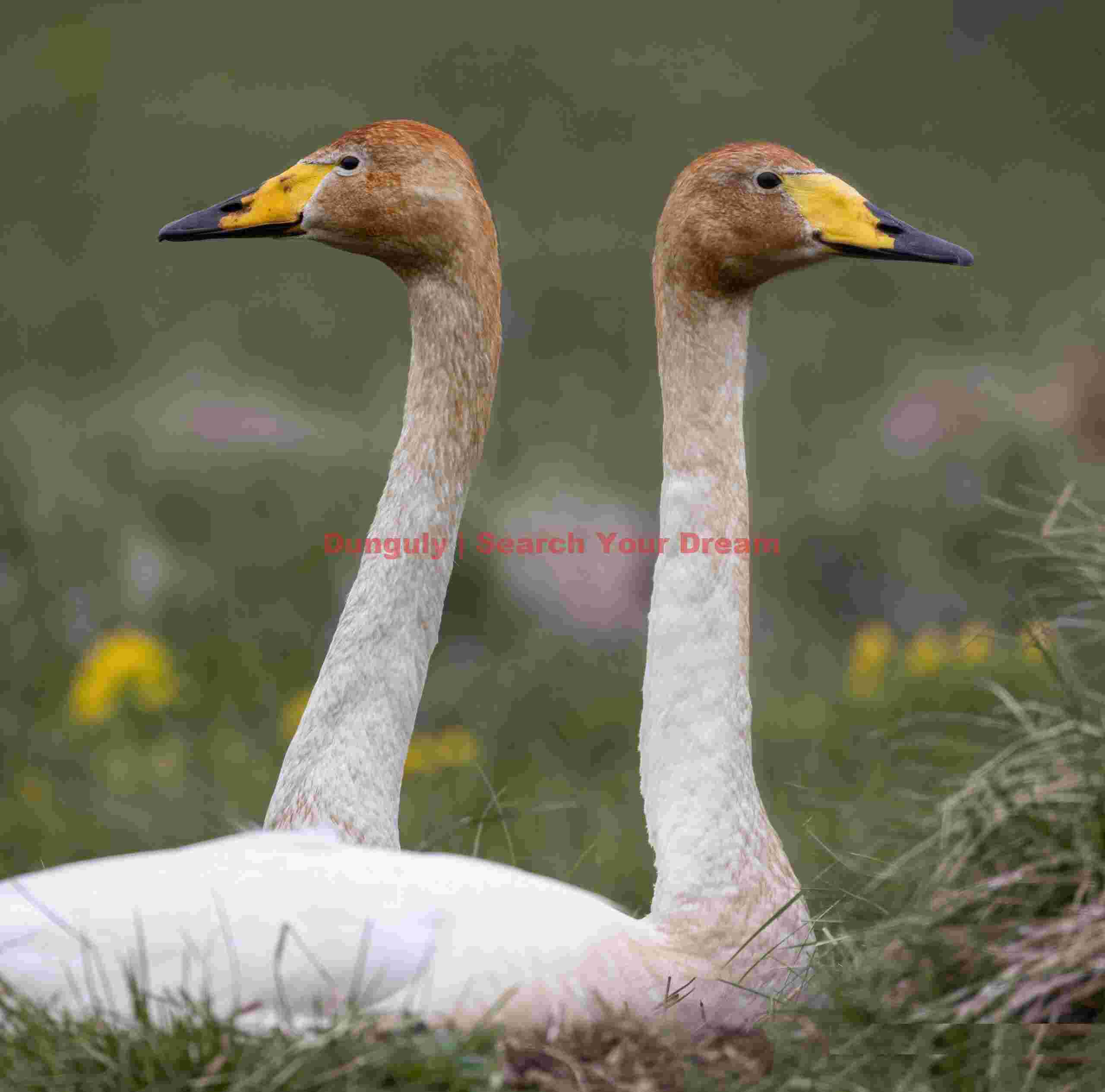 TITLE: Whooper Swans Looking Opposite Ways
