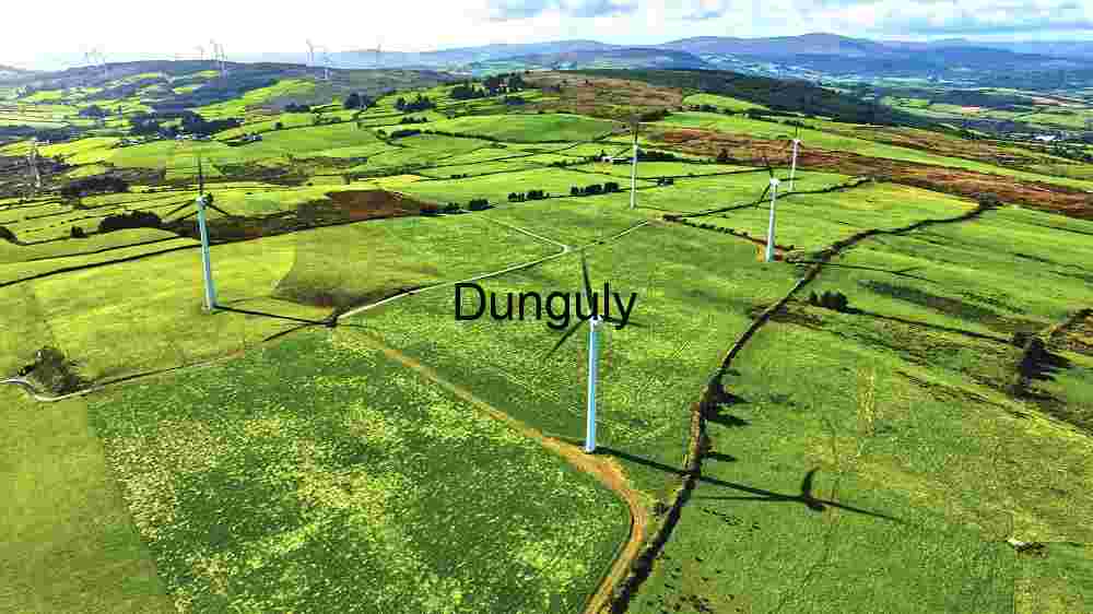 Keywords: rural, landscape, wind turbines, green fields, fences, roads, hills, cloudy sky, renewable energy, sustainable power sources, agriculture land division